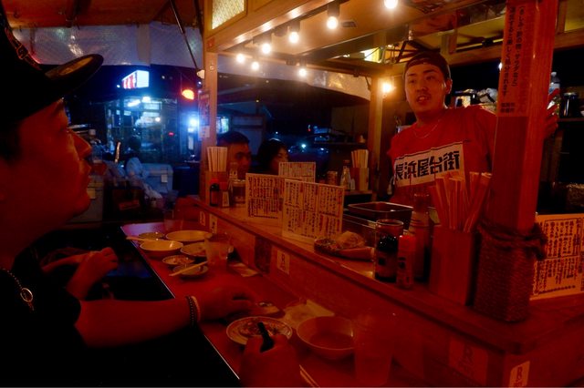 迷排隊吃屋台。用好吃的關東煮蘿蔔和厚到不行的明太子玉子燒結束這回合。