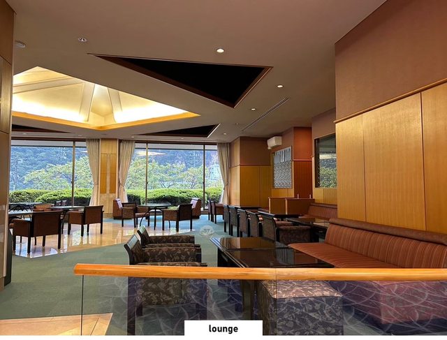 飯店晚上的外觀在燈光照射下非常漂亮,由兩棟建築連接而成,共有五層樓。飯店設施一應俱全,包括 大廳 | 庭院 | 餐廳 | 溫泉|宴會廳 | 小商店 | lounge | 卡拉OK 等
