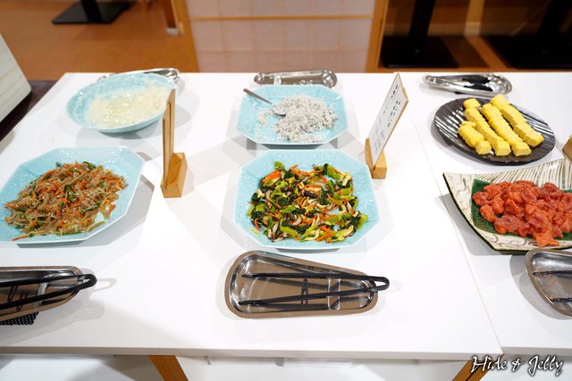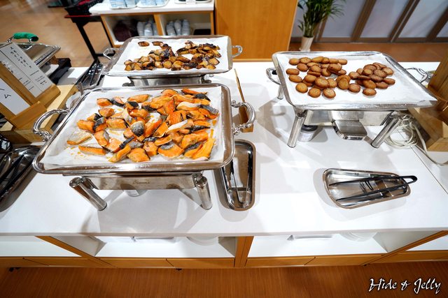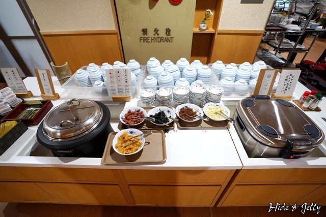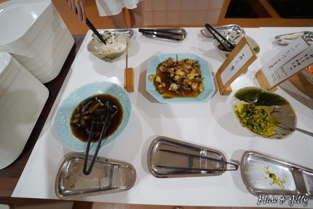 早餐部分則採用全自助餐,配菜有炒青菜、吻仔魚、明太子、玉子燒等。