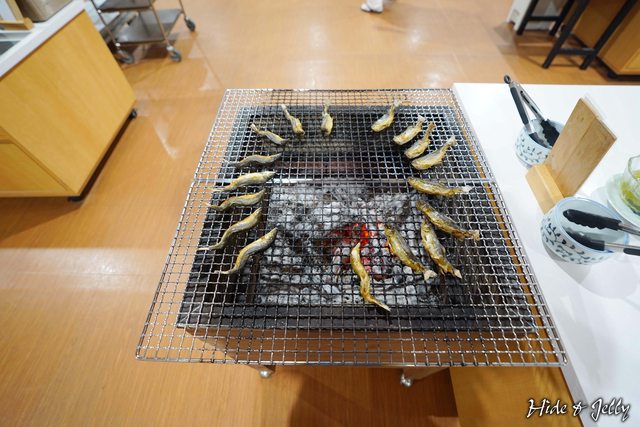 自助餐中主打的這道熊野川塩燒香魚,一直用炭火保溫著,存在感很強烈。且不斷飄出令