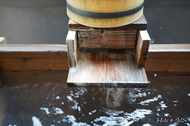 碳酸泉的泉質,水質清澈但仍可以看到些許溫泉花在水中載浮載沉。