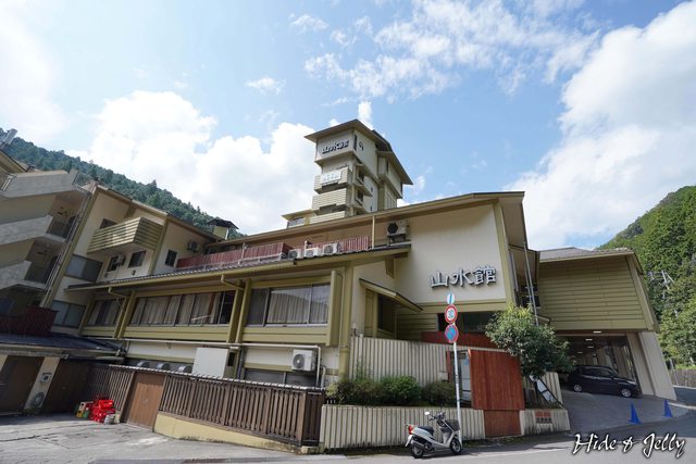 們沿著縣道241號前進,就可以看到路邊寫著「山水館」的川湯綠屋了。飯店本身不算新