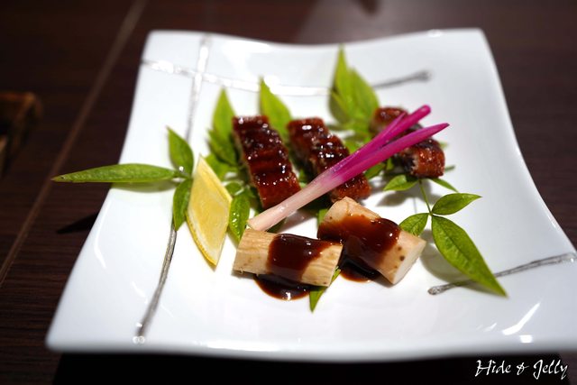 接著是蒲燒鰻魚與牛蒡,身為鰻魚愛好者,沒有料到可以吃到鰻魚的我們,看到鰻魚上桌