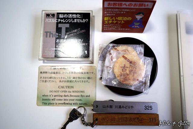 旅館給我們兩把鑰匙,一把金屬一把木頭,居然不同風格。房間附的小點心不是常見的溫