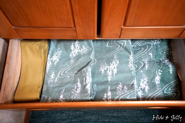 衣櫃打開,則出現不同Size的浴衣,浴衣的圖案則是熊野森林的意象,不過因為外頭沒有