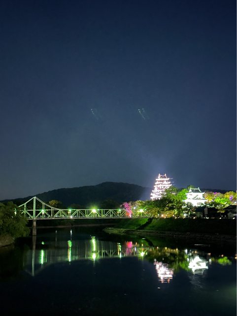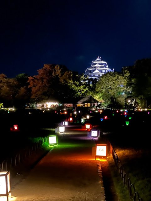 剛好遇到最後幾天的夜間點燈,打在岡山城上的燈光會隨時間變換不同顏色