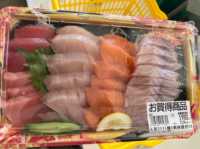 男友超開心地買了一大盒生魚片只要日幣1980元!