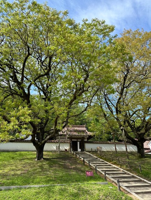 百年樹木、木造建築和翠綠草地的搭配真的太美了!