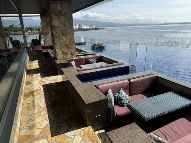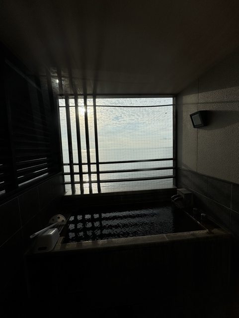 灣的海景。但因為湯屋是沒有窗戶的,所以可能會有飛蟲要注意。早餐還不錯吃,但沒有