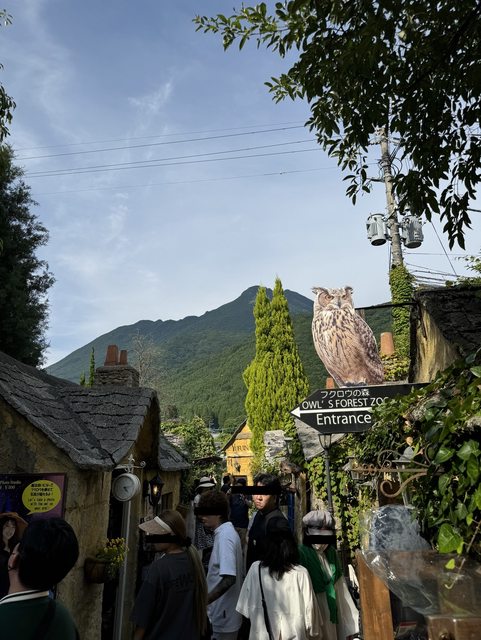 抵達由布院大概是下午4點出頭,湯布院花卉村這邊停車位還滿多的。這邊有條小徑建築