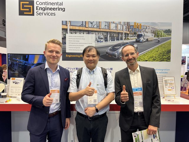 ▲倍米董事長陶治中與馬牌電池系統PM Markus Czernek(右)及亞洲CES部門主管Daniel M