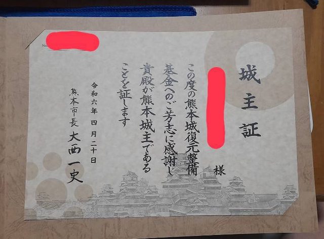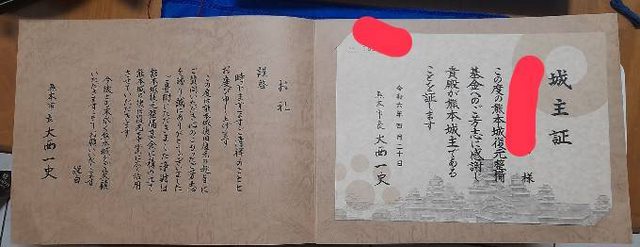 : 另外推薦這個 捐款10000日圓可以獲得一張城主名片+城主證書