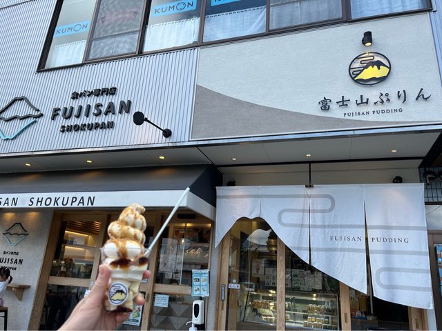 快到河口湖駅時,買布丁霜淇淋(480円),蠻好吃的。