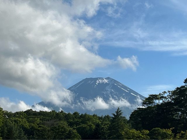 搭14:45往御殿場方向的巴士,路途中原本遮住富士山的雲層慢慢散開。
