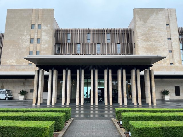 約40分鐘車程抵達飯店。因為早上下雨,山上有起霧。