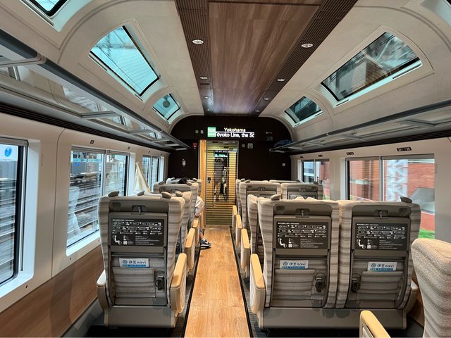 搭15:31的Saphir踊子號到橫濱(16:27),票價3,840円竟然比新幹線還貴(熱海到新橫 濱,3,830円),不過超大的觀景窗及舒適的座位(一鍵可調整座位椅腳高度)還是很棒 的體驗。