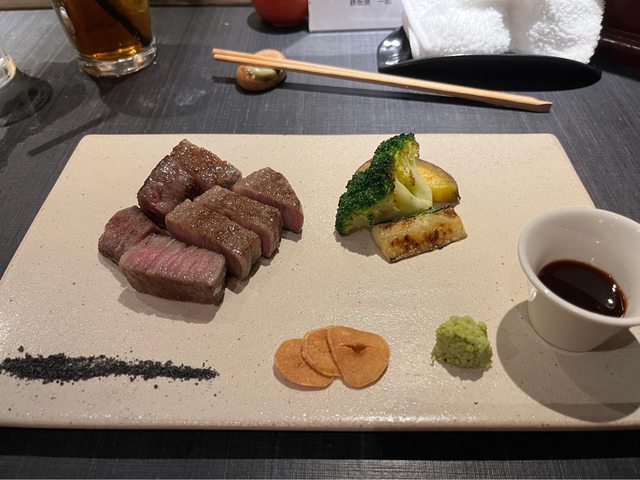 晚餐有預訂鐵板燒一如,離車站約7分鐘,套餐從7,700円起,料理好吃、主廚也親切跟我 們聊天。