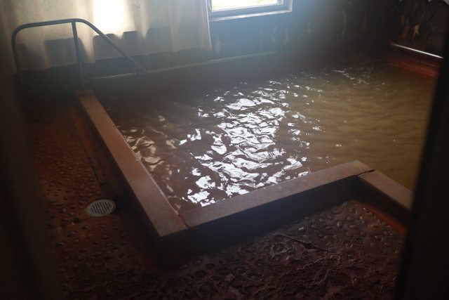 水充滿著礦物質溫泉成分是褐色的溫泉水,當天陰天快下雨的天氣,泡在熱熱的水池裏面剛好放鬆了騎腳踏車時緊繃的肌肉與肩頸,不過水濁濁的看不到池底沒戴眼鏡沒踩好差點跌在水池裡面。