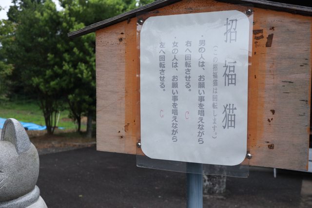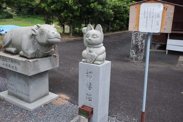 祭祀著少彦名命,境內有個石作的招財貓。告示寫著一邊想著願望男的右轉貓三圈,女的左轉貓三圈。因為當時天空正在開始滴雨,就一邊轉著貓一邊祈禱”拜託讓雨停吧 至少在我回到港口前都先不要下雨吧”。