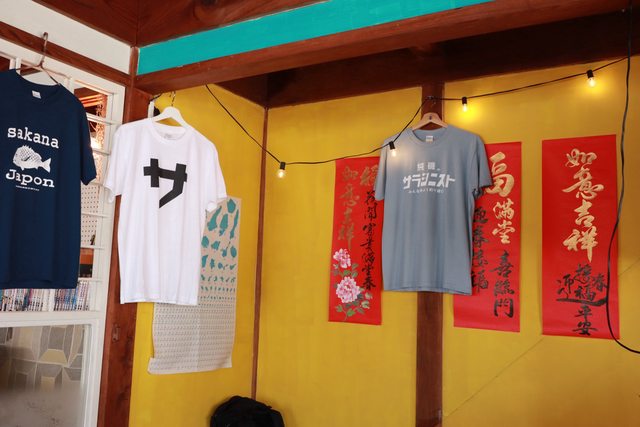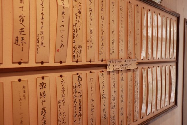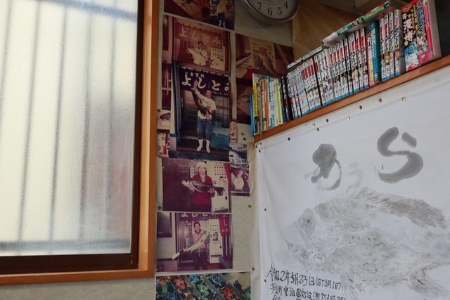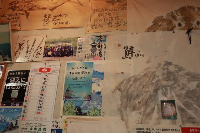 民宿工作人員推薦的漁夫食堂,店內也貼滿了食堂主人釣魚的漁拓戰利品。