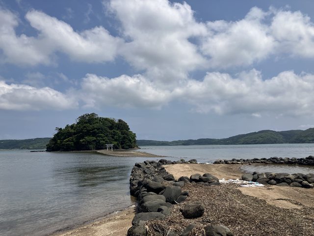 只有退潮時間才能過去的神社,抵達時候正在退潮中,不過最近好像在做工程也不讓人過去的樣子。如果要過去建議上網看一下工事是否已完成以及要搭配潮汐時間。