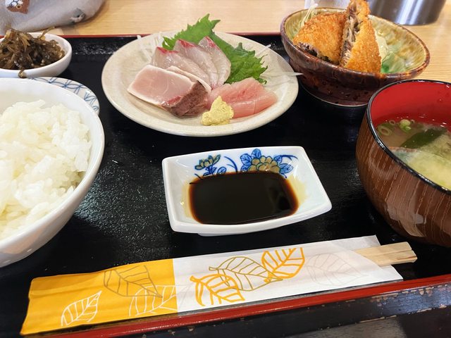 平價又美味,生魚片絕對新鮮,旁邊那片炸魚(竹筴魚?)也蠻好吃的,份量也十分足夠可以吃飽。