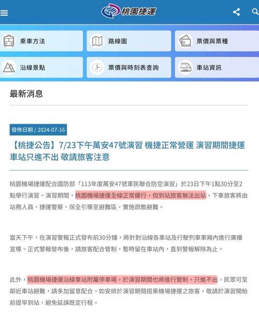 演習期間請提早出門去機場,