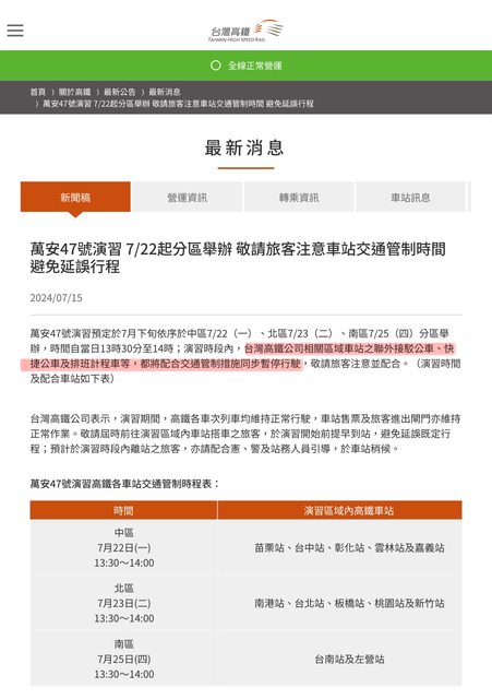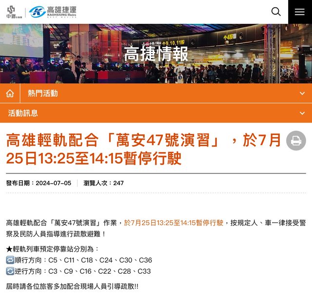 標題[資訊] 113.7/22-7/25演習,漢光40、萬安47