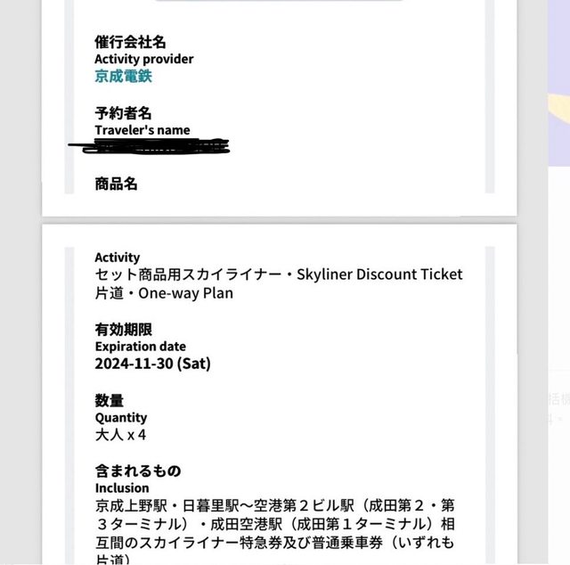 1. 讓售品項:skyliner 京成電鐵單程4張