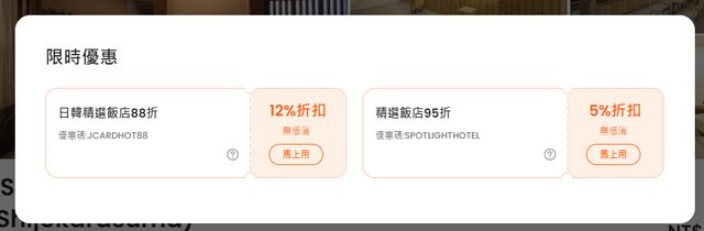剛剛上去看優惠很多 可以趕快去把優惠券都領一領再開始訂飯店或其他東西
