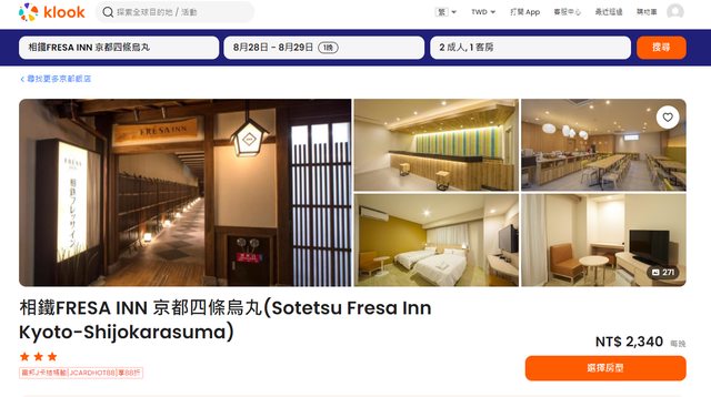 8月底要去京都,最近在找飯店準備要下訂