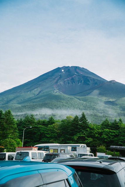 07:00搭上半滿的接駁巴士(來回¥2200),大概30分鐘就抵達了富士五合目。這裡有不用