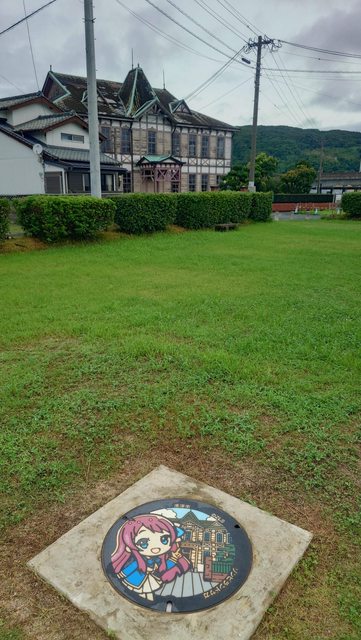 小櫻人孔蓋在斜對面的民俗資料館綠地上