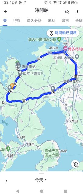 這一天的google地圖時間軸,繞了佐賀一圈