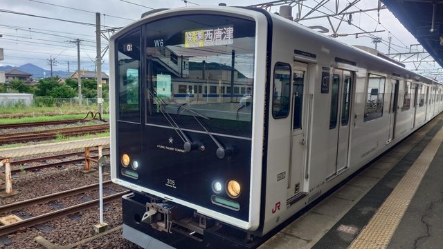 早上9點多從博多出發,搭乘地下鐵空港線往西唐津的快速列車,中間直通運轉筑肥線