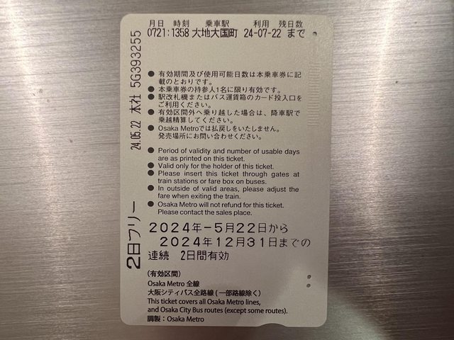 標題[資訊] 大阪地鐵巴士2日券