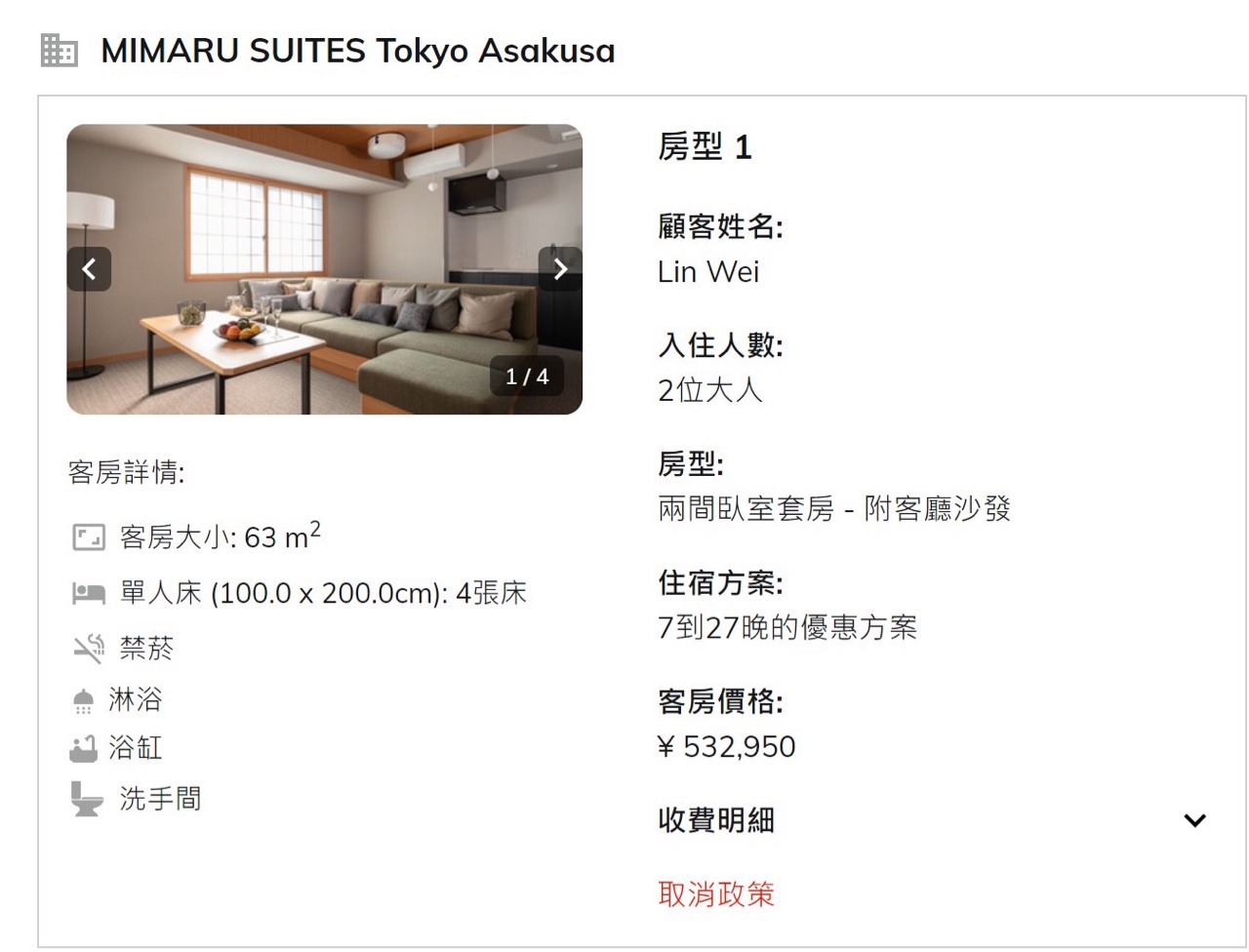 標題[讓售] 東京淺草7/26-8/3