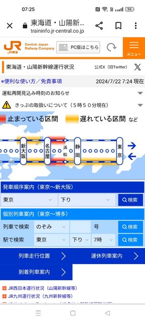 萬幸是往西沒有停駛只有延遲(也取消了東海道新幹線直通山陽新幹線的車班)