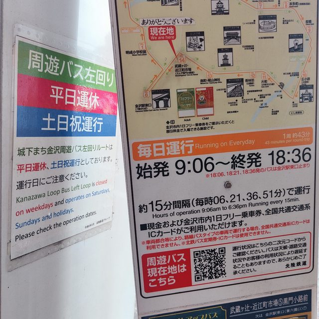 6.金澤周遊公車平日只開右回沒開左回(目前看到是這樣 不知道有沒有固定)要第一站