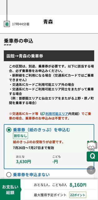 推 egg665 : ekinet直接買函館到青森紙本只要8160,你分段440+7 07/26 11:11