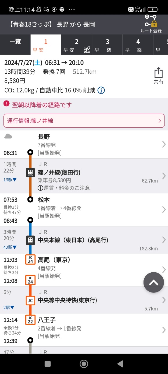 有一天預計打算利用青春18散策從長野跑到長岡看花火,上網查資詢從長野搭到長岡...