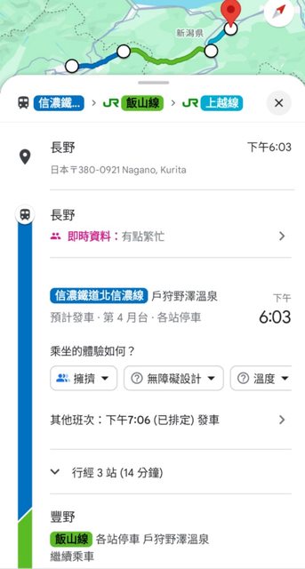 上網查詢交通,有些疑惑想請教或許有經驗的版友,長野到長岡途中會經過豐野