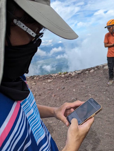 攻頂以後領隊跟每個人擊掌,然後調查要去山頂お鉢巡り(繞火山口一圈)的人有多少