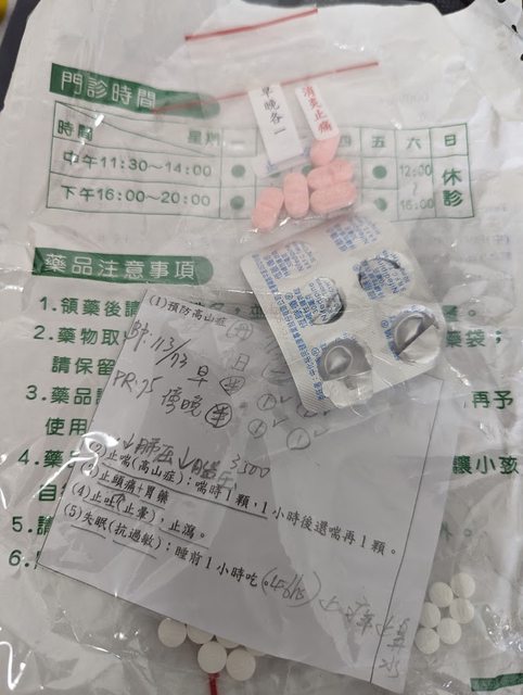 推薦大家出發之前做好準備,去家醫科拿高山症的藥,