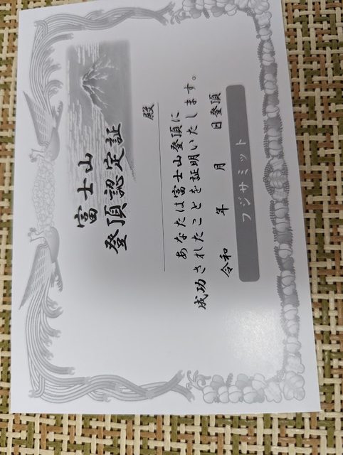 回程得到登頂認定証一張