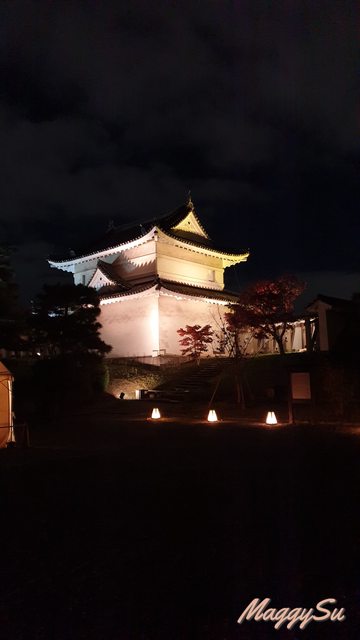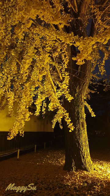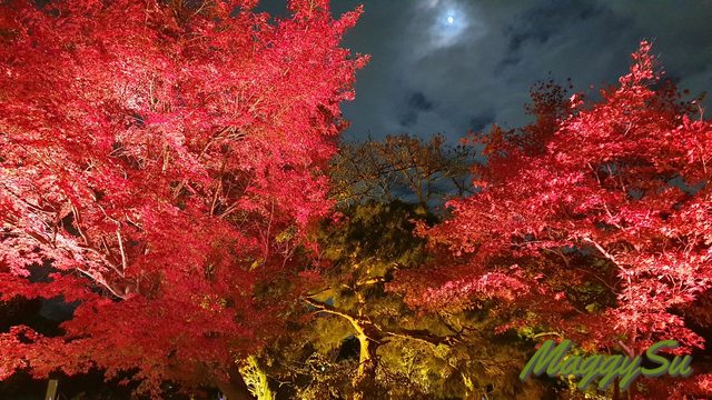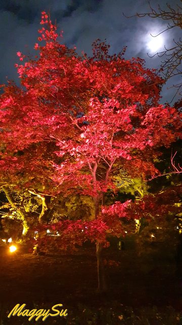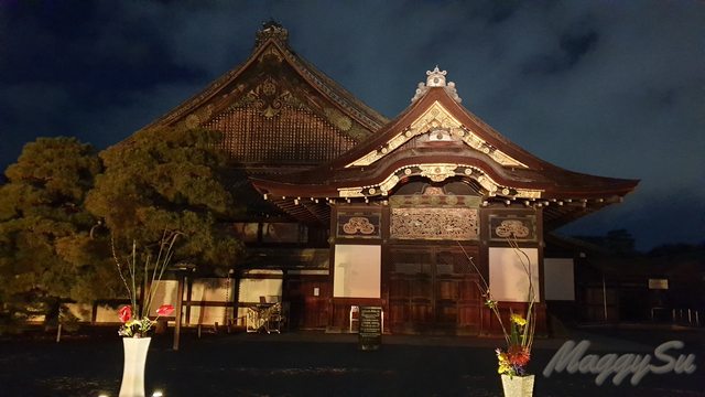 晚上我們再到二条城觀賞「NAKED FLOWERS 2023 秋」夜楓光雕秀,雖然來過京都好幾次,但這是我第一次來二条城,而且想說爸爸已經看過永觀堂的夜楓了,這次就來點不一樣的夜楓。不過或許是白天光明寺的楓葉太美了吧,我們三人都覺得還是早上的楓葉略勝一籌。