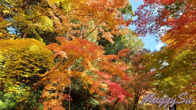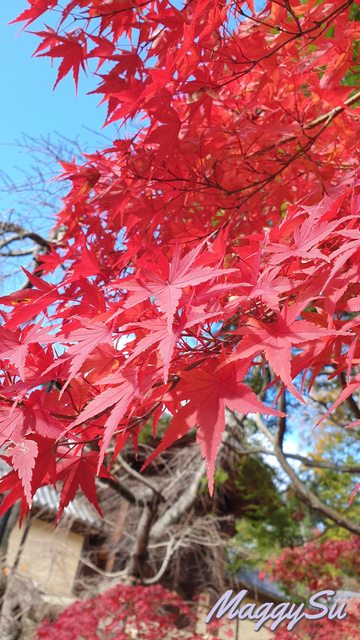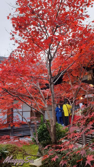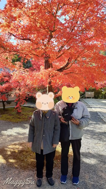 不得不說,光明寺的楓葉真的有它的美。就連平時不愛拍照的媽媽也選了花手水旁的這顆鮮紅楓葉當背景,留下與爸爸一起的楓葉合照。今年因為較熱的原因,楓葉有較晚轉紅,所以我們去的時候還未完全見頃,但也因此欣賞到了紅橘黃綠交錯的楓景,反而顯得更有層次,另有一番風味。由於篇幅的關係只能放上幾張照片讓大家欣賞,實際上我在這拍攝的照片可是費了我手機好多的內存呢(笑) 照片皆為手機內建相機拍攝,沒有使用濾鏡或修圖。