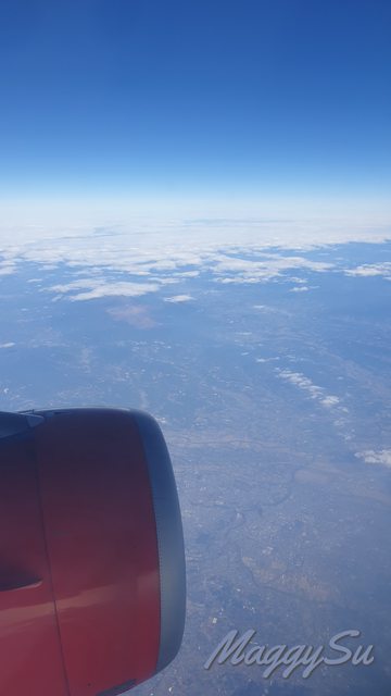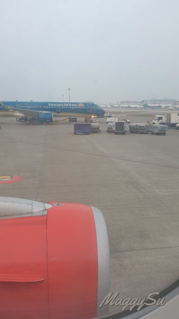 出發時大概比原先的登機時間晚了半小時才開放登機,跟以往一樣,購票時我沒有特別加價劃位,但這次剛好排在了靠前方的位子。第一次搭乘泰越捷,印象最深刻的是長髮的女性空服員也不用盤髮,我還是第一次看到跟一般民眾一樣長髮披肩的空姐,還有機上有泰語廣播,覺得蠻有趣的。媽媽則說泰越捷的座椅比較像沙發座,覺得比以前搭過的虎航舒服一點。