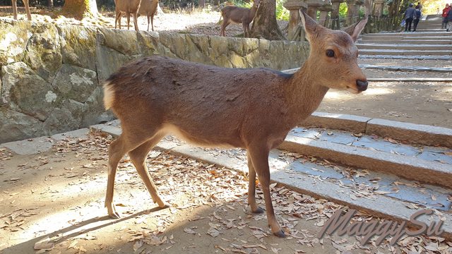 趣的樣子我們都被逗笑了。而山下東大寺附近的鹿卻與這邊的不同,每天不曉得被大量的