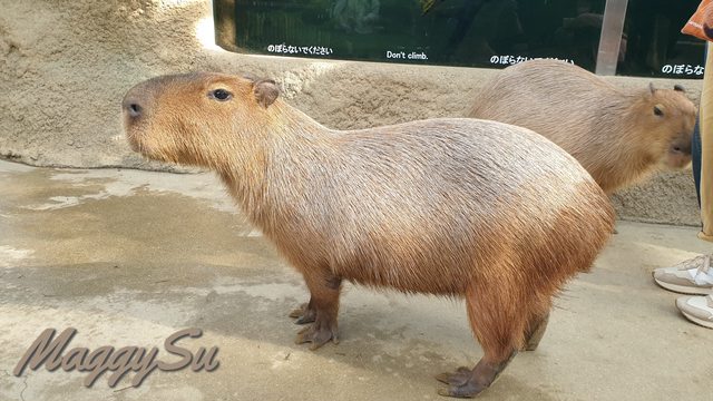 今天我們要到神戶動物王國去,多年前我帶爸爸來這裡玩的時候留下了很好的印象,所以再次來關西就決定一定要帶媽媽來逛逛。神戶動物王國最大的特色就是能跟許多可愛的動物近距離接觸,水豚君就是其中之一,這次我還買了園區的飼料餵食,也讓媽媽試了一下,真的好可愛XD